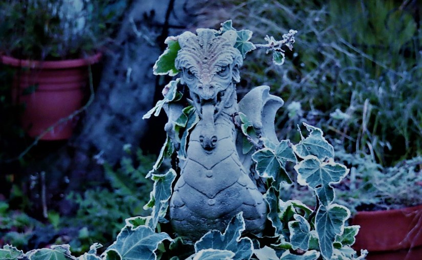 Today my dragon poem was intirely inspired by a photo from Derrick Knight’s fabulous site.. With Derrick’s kind permission, his frozen dragon photo is featured above. You may visit his corresponding post via clicking on this link >> https://derrickjknight.com/2021/01/08/twilight-haze/