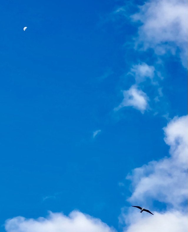 I think the moon…no matter what colour the sky is…likes to watch us. π