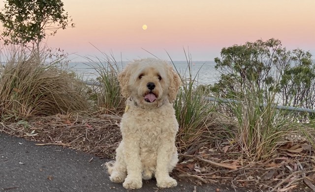 Thank you very much, Cindy … Frankie loved his walk on the track overlooking the Rippleside Beach area and the view of the sun as it rose over Corio Bay was a sight to behold 🤗😍🌏📘💙🐶😎🌖