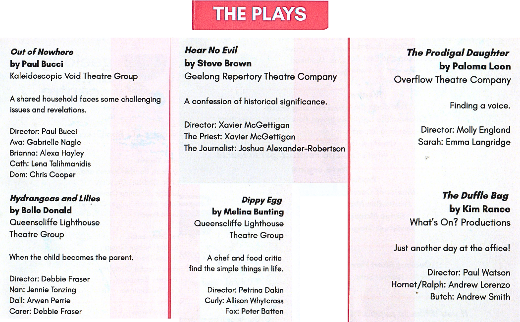 Today I attended the matinee session of the Geelong Short Play Festival at the Geelong Performing Arts Centre, and left feeling inspired by the depth of local talent and the warmth of community spirit.