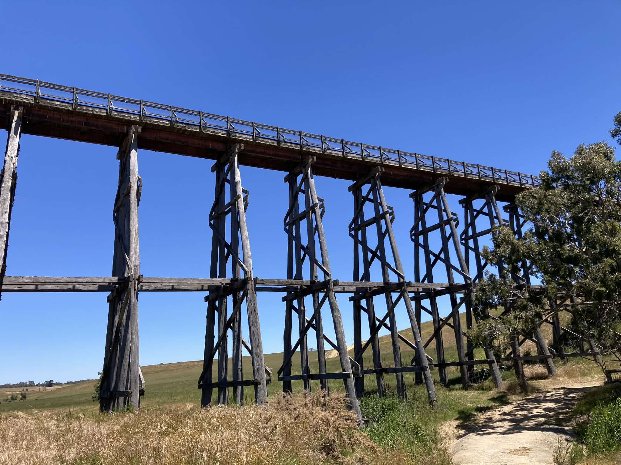 The Ballarat – Skipton Rail Trail, sunburnt meadows, and tree-shadowed tunnels