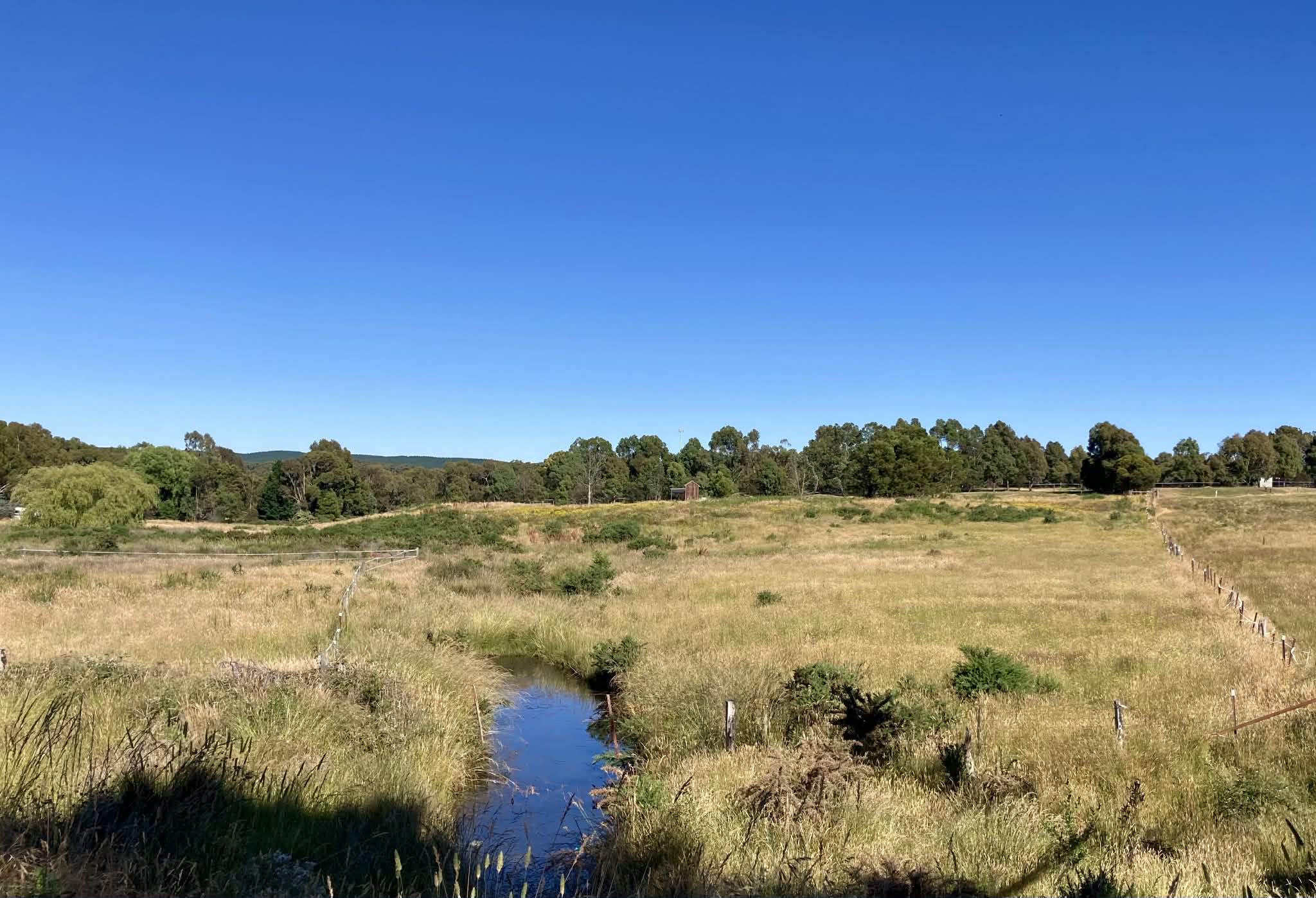 Gently meandering over sunburnt meadows,