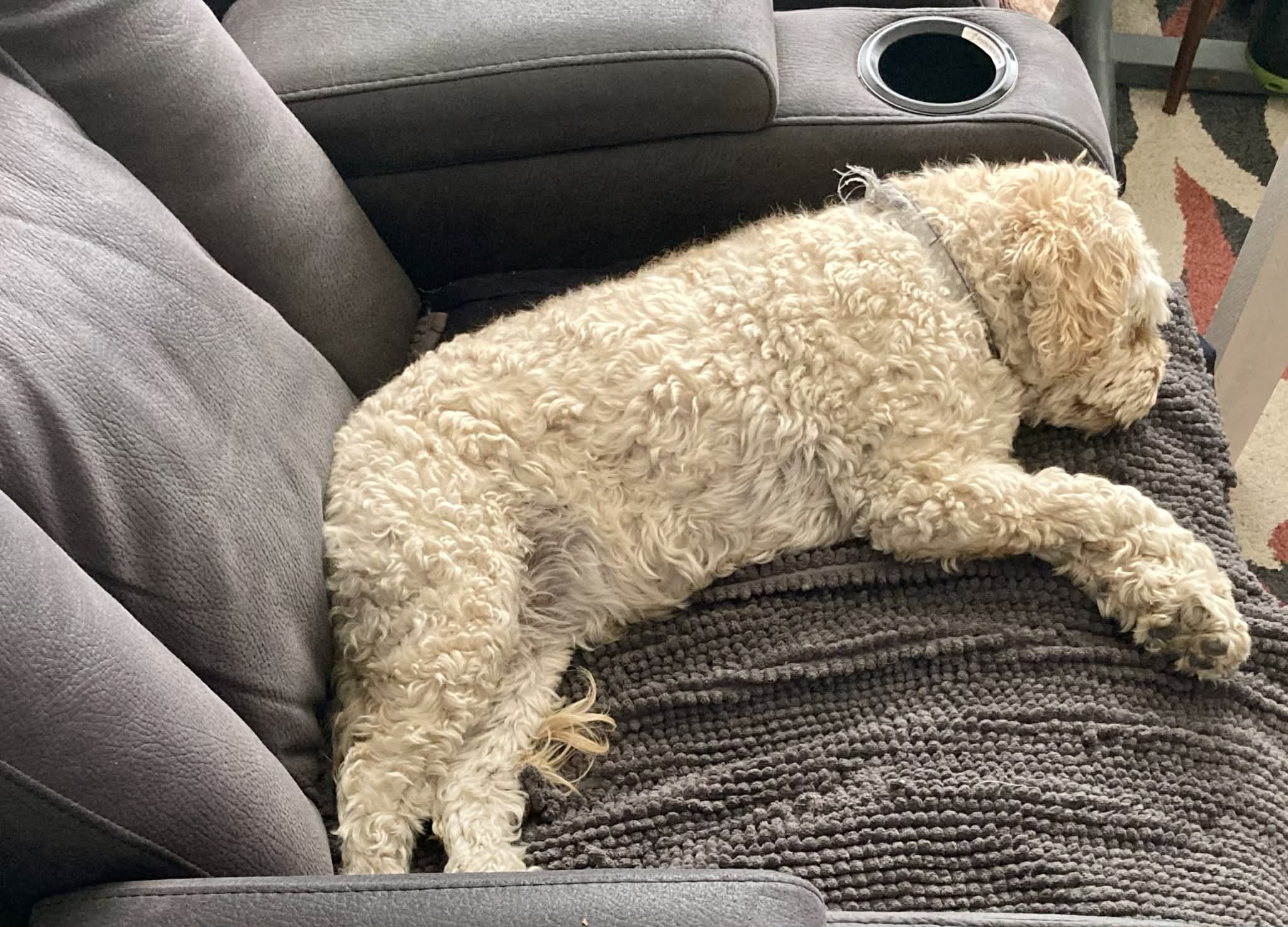 A quiet day indoors — Frankie dozing, Lisa O’Neill singing, and words drifting through the heat.
