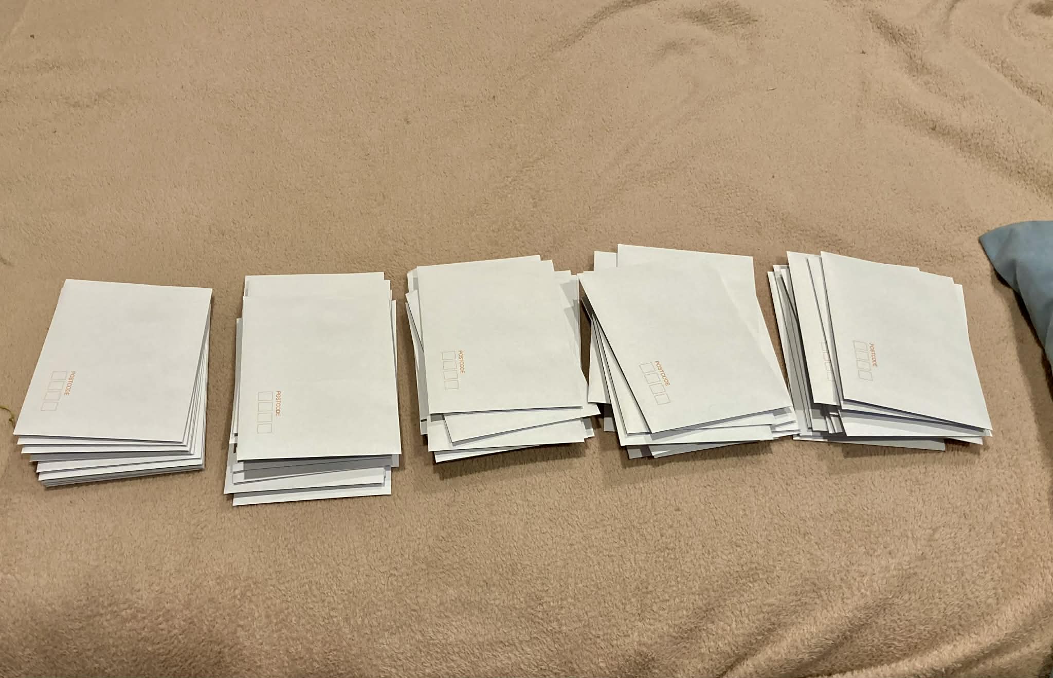 Shoving them into an envelope