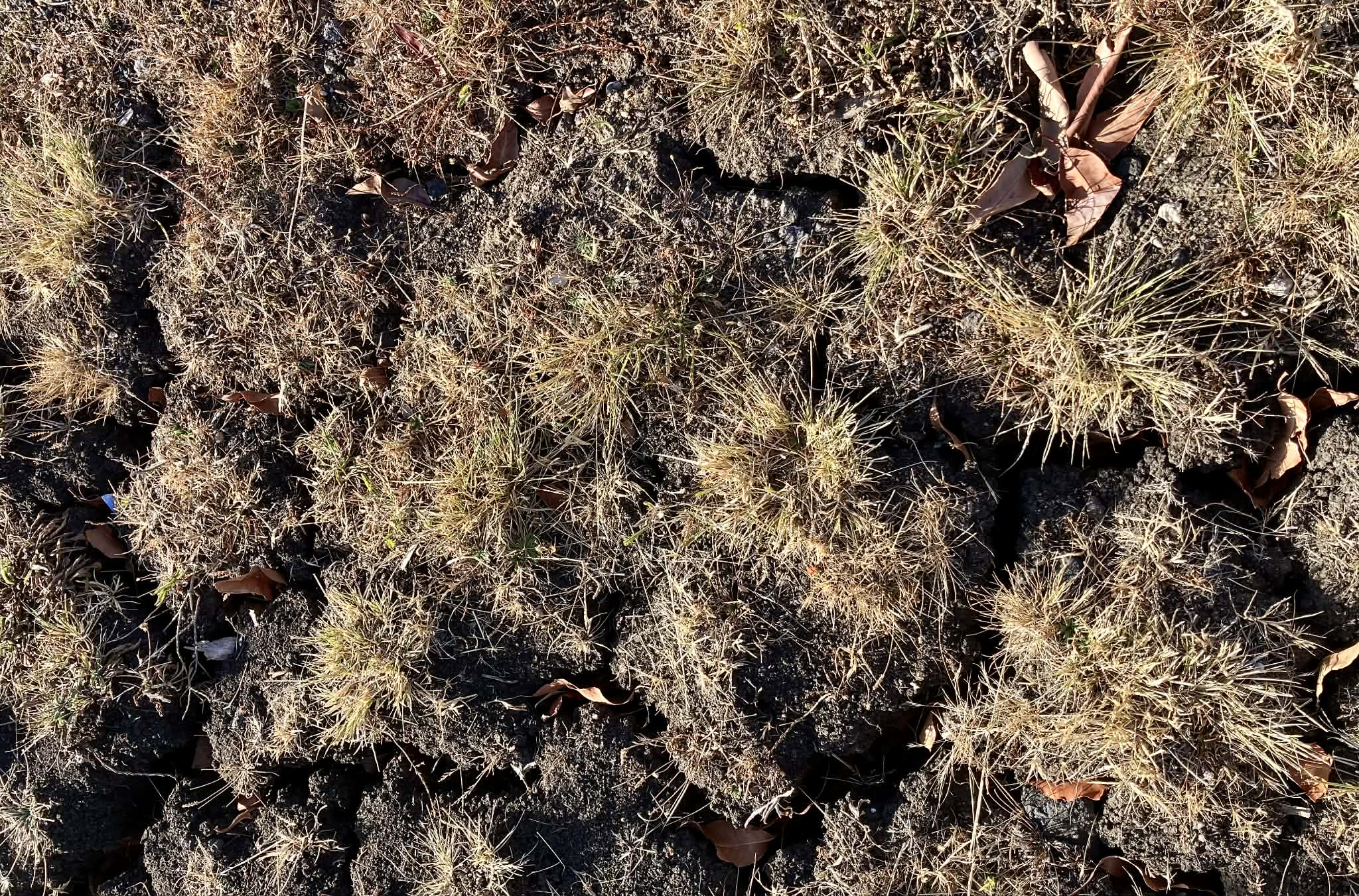 covered in a maze of deep, dark cracks,