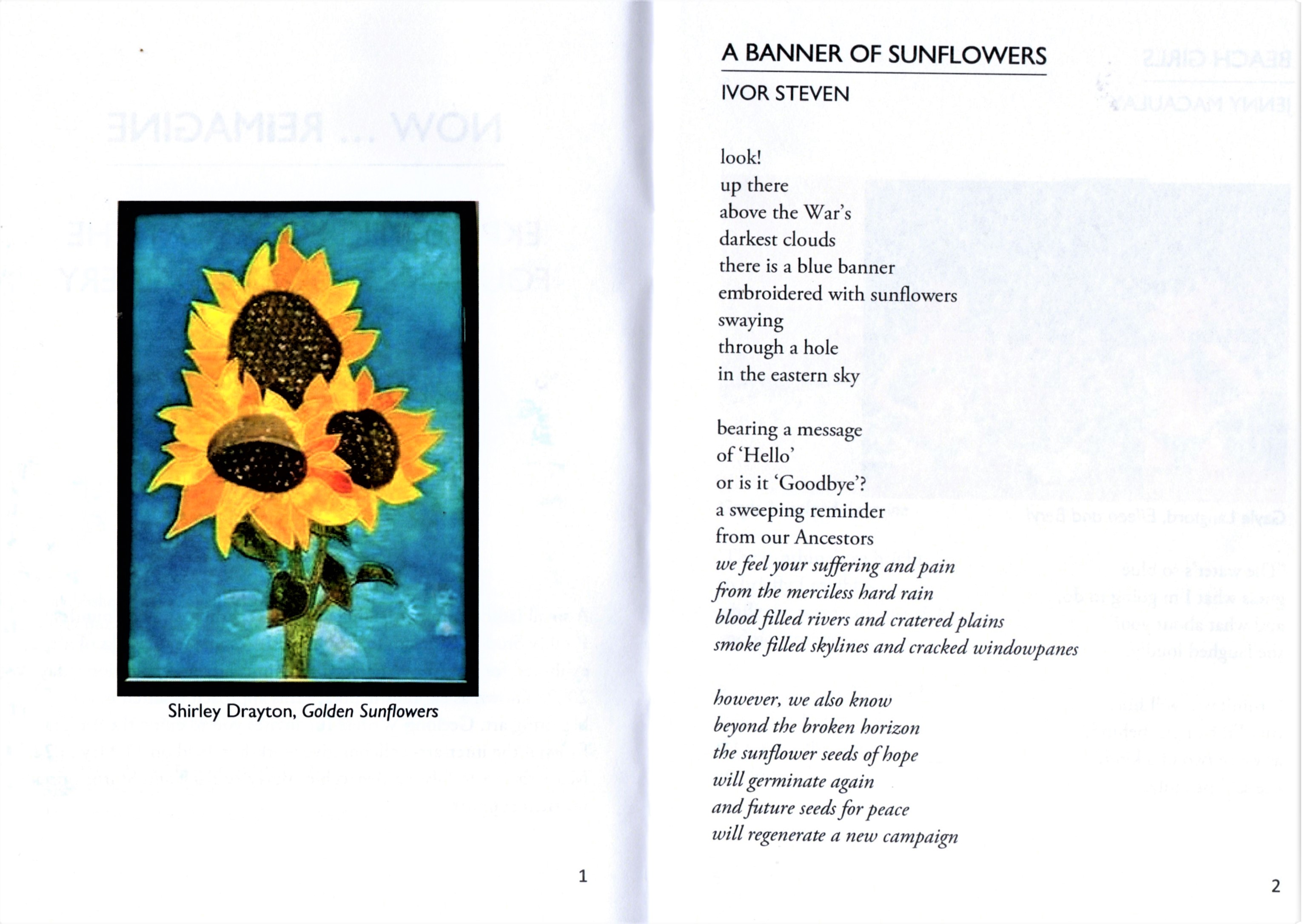 Continuing on from yesterday’s Ekphrastic poetry workshop, here is my poetic response to Shirley Drayton’s creative piece of textile artwork “Golden Sunflowers”
