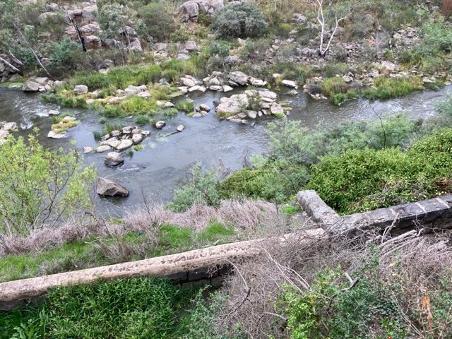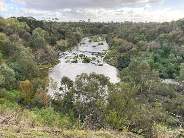 The Weir on the Barwon River above Buckley Falls, which fed water into the old Paper Mill viaduct — Frankie and Maureen