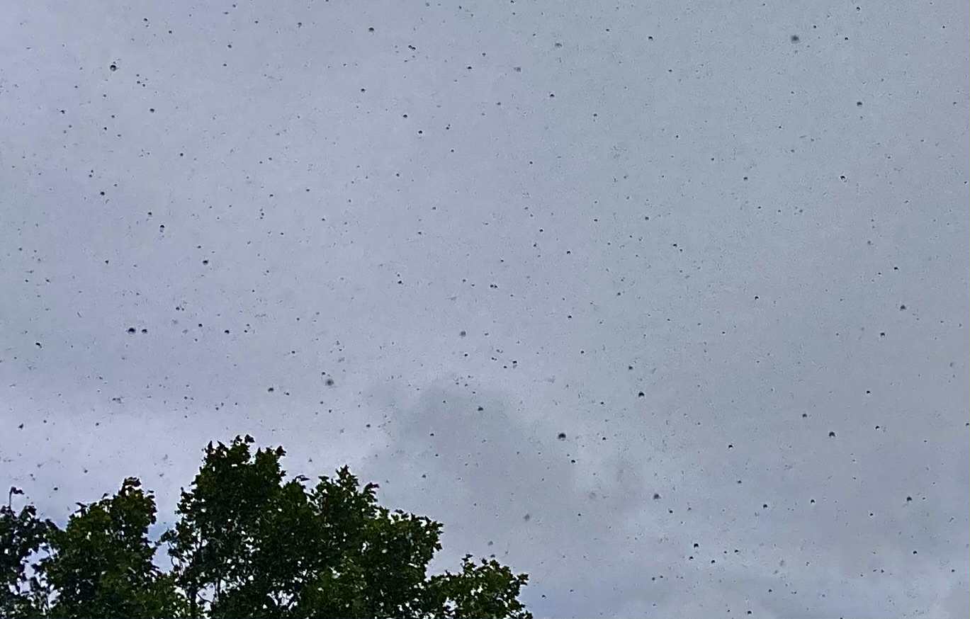 The dismal clouds are in a miserable mood, And full of destructive ice-cubes.