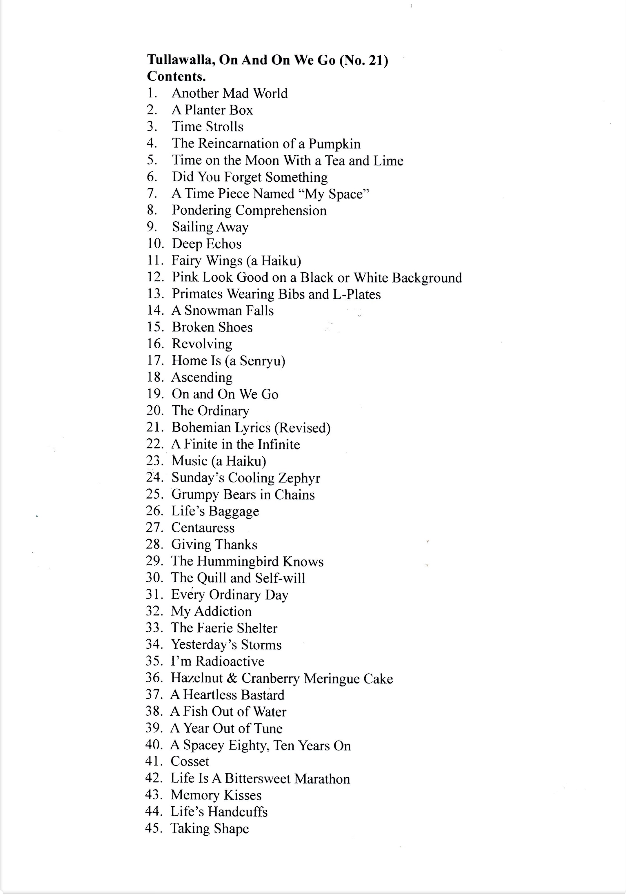 Hello dear readers and followers, I am announcing “Today” that “Tullawalla #31” is to be the final publication in my series of “Tullawalla” Booklets … For new readers that don’t know about these booklets, they are basically the reason why I write poetry. I produce these ‘home-printed’ booklets for the sole purpose of raising funds for my favourite charity organisation, the MS Society, in Australia via the MS Charity Shop here in Geelong. And actually all money’s I receive for any of my poetry .via, submissions, I donate to the MS Society…. I’m proud to announce, that the sale of my “Tullawalla Booklets”, have now gone pass $1500.00, … to all the lovely readers, who have donated, to help achieve such a wonderful amount, a big heartfelt thank you, from “us” and the MS Society … …..Incredibly, there is now a total of “1347 poems”, Yep, over “Thirteen Hundred Poems” in my collection/series of “31” Tullawalla Booklets. After 6 YEARS of processing these booklets, my journey has finally come to an end, and here I am back at the ‘Front Gate’ to the Tullawalla, (House Number “31”), I have now completed the cycle
