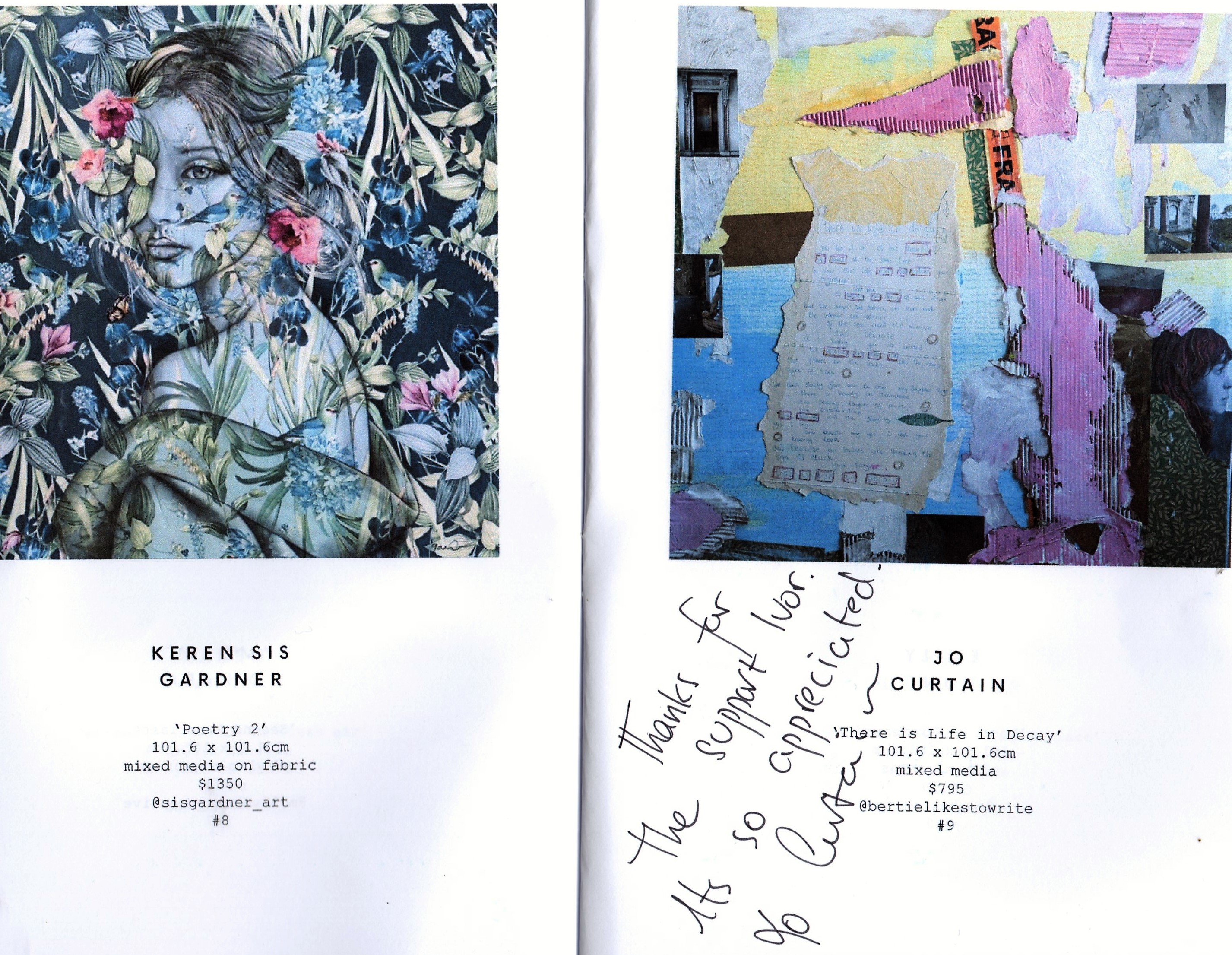 On Friday evening I had the pleasure of being invited to the opening night of the ‘Group Art Exhibition’ at the “Space Gallery/Workshop”. For those in the Geelong Area, I thoroughly recommend you try and attend this outstanding display by our local artists. The Exhibition is open until February 25th. Below: I have attached several paintings/Artworks from my Catalogue, and I was fortunate enough to have some of the Artists sign my catalogue … they were all very charming and keen to chat about their exhibits, and a special thank you to my friend Jo Curtain, who invited me to this wonderful event.