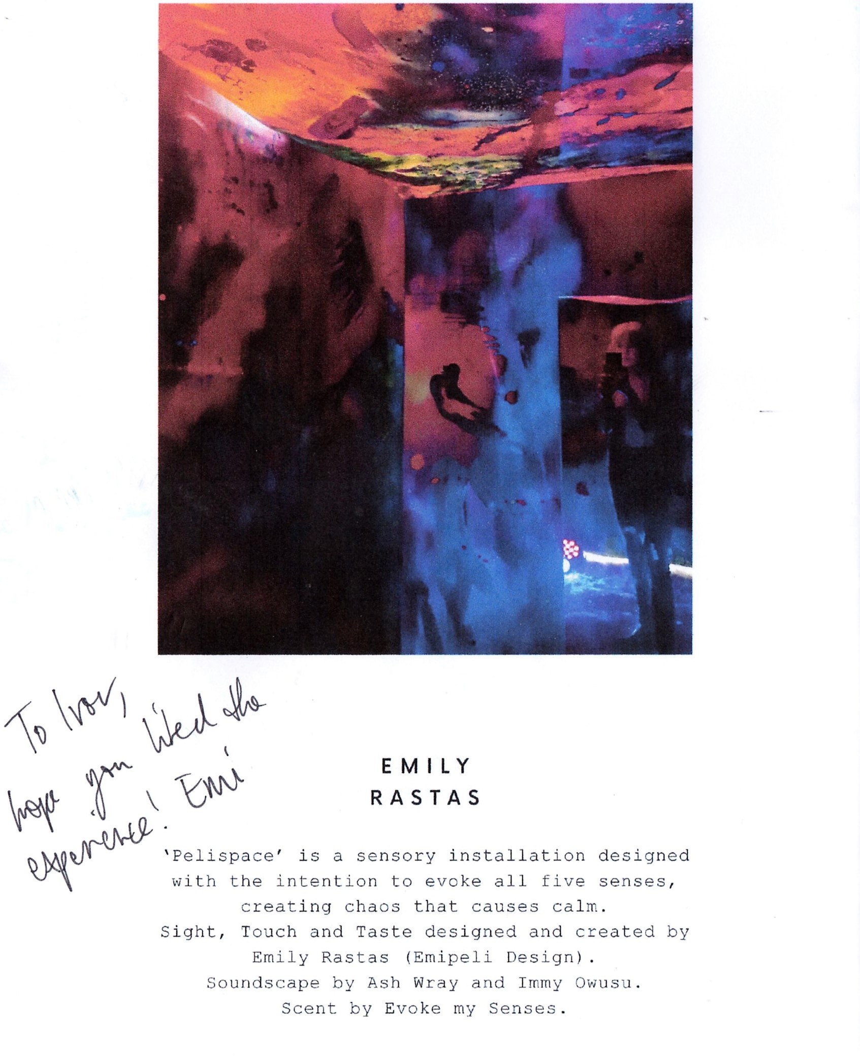 L – Keren Sis Gardner: an intriguingly beautiful painting “Poetry 2” C – Jo Curtain: an absorbing mixed media piece, “There is Life in Decay” R – Emily Rastas: a fascinating sensory installation, “Pelispace”
