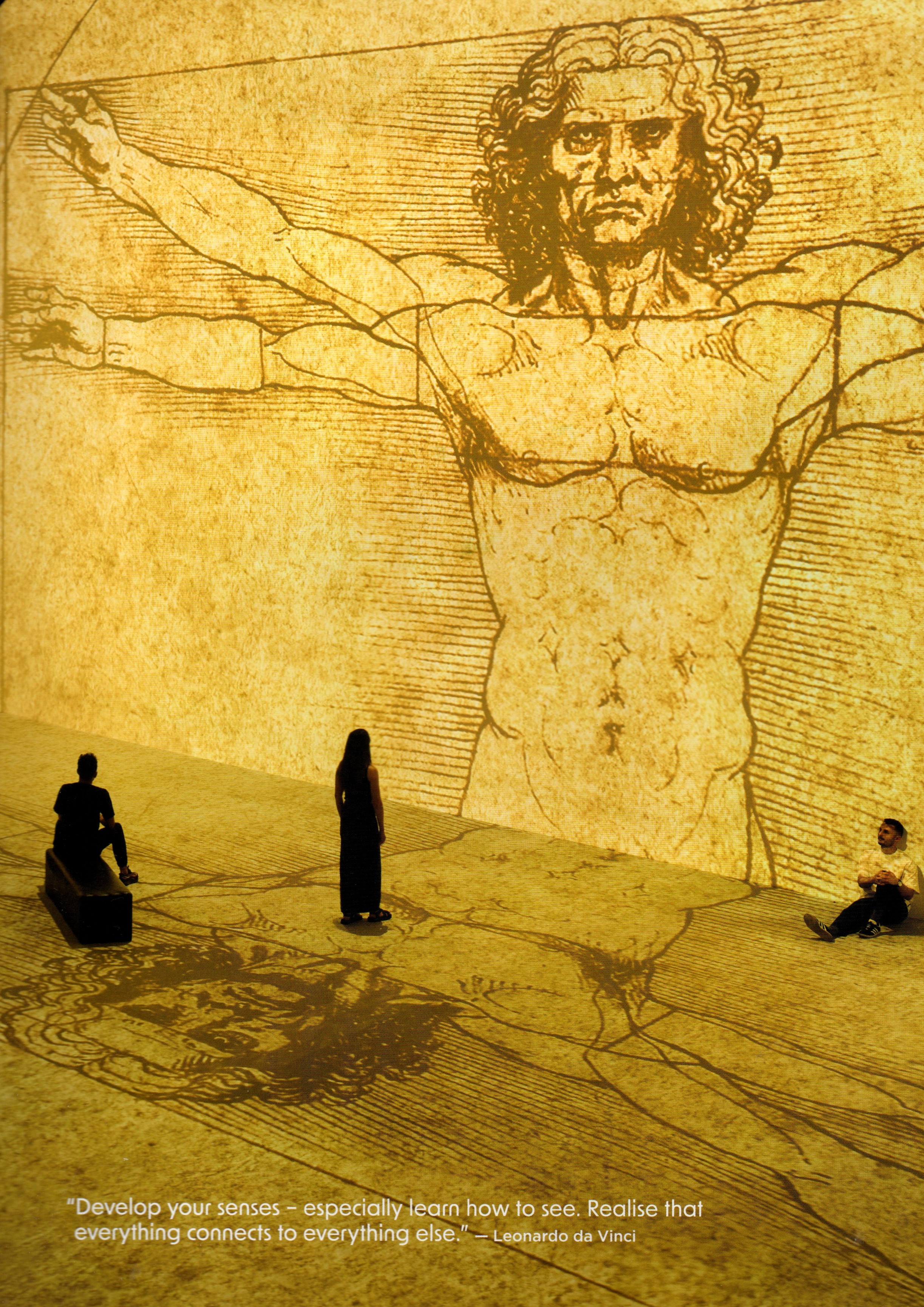 Today, I accompanied my friend Barb to Melbourne’s wonderful Lume Gallery to see the amazingly expansive exhibition of Leonardo Da Vinci’s unique and monumental display of his artistry, creativity, and ingenuity. Definitely, an opportunity that I was not going to miss out on, and I hope my photo/story conveys our fantastic experience of being mesmerized by the “Genius of Da Vinci”