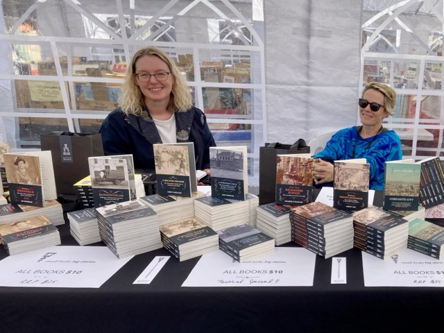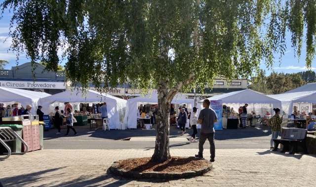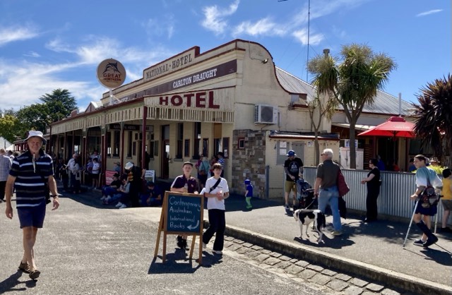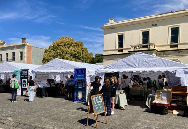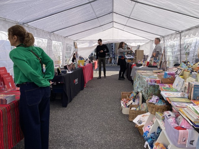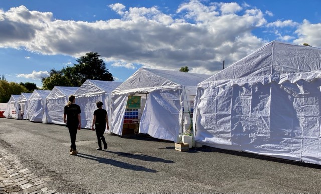 Friday, 4.30 pm: The Marquees in the town’s main street are all set up, and we organize our stall in marquee “Q.”