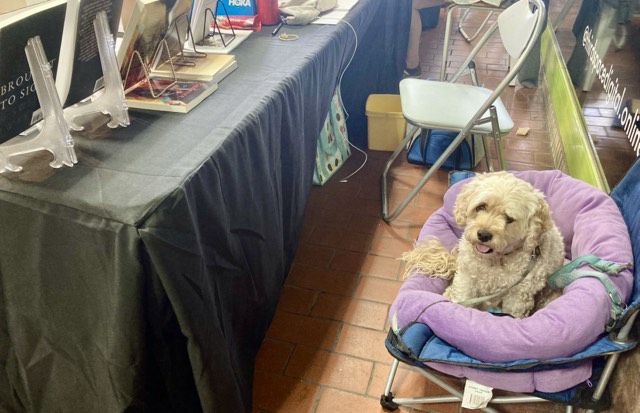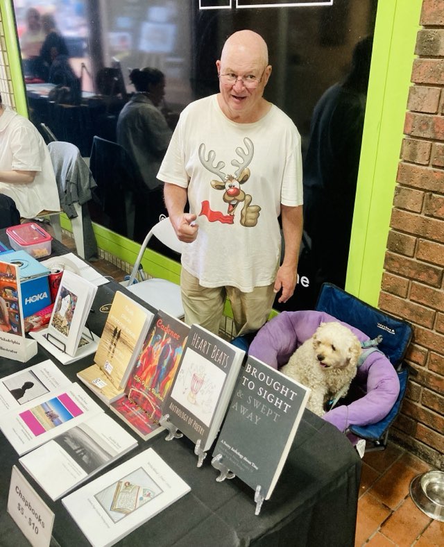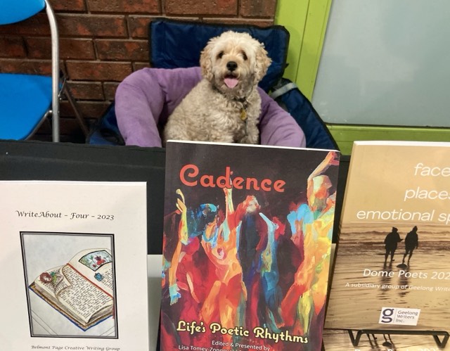 The “Creative Geelong” Christmas Market was on Friday evening from 5.00 to 9.00 pm and Saturday from 11.00 am to 4.00 pm. Because of the stormy weather on Friday, the crowd was a bit light; however, on Saturday, the attendance was good. Frankie and I thoroughly enjoyed ourselves. My ‘Lucky-Dip’ bucket of poems again proved to be a fabulous way of meeting and chatting with the customers. Meanwhile, Frankie also received plenty of friendly pats and some extra doggie treats.