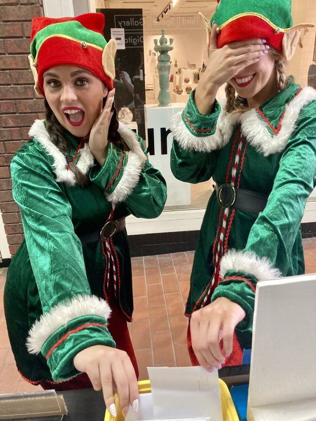 Bottom Images: Santa’s little helpers delving into my “Lucky Dip” bucket … It’s nearly closing time, I’ve run out of Lucky Dip poems, and Frankie and I are waiting to pack up …
