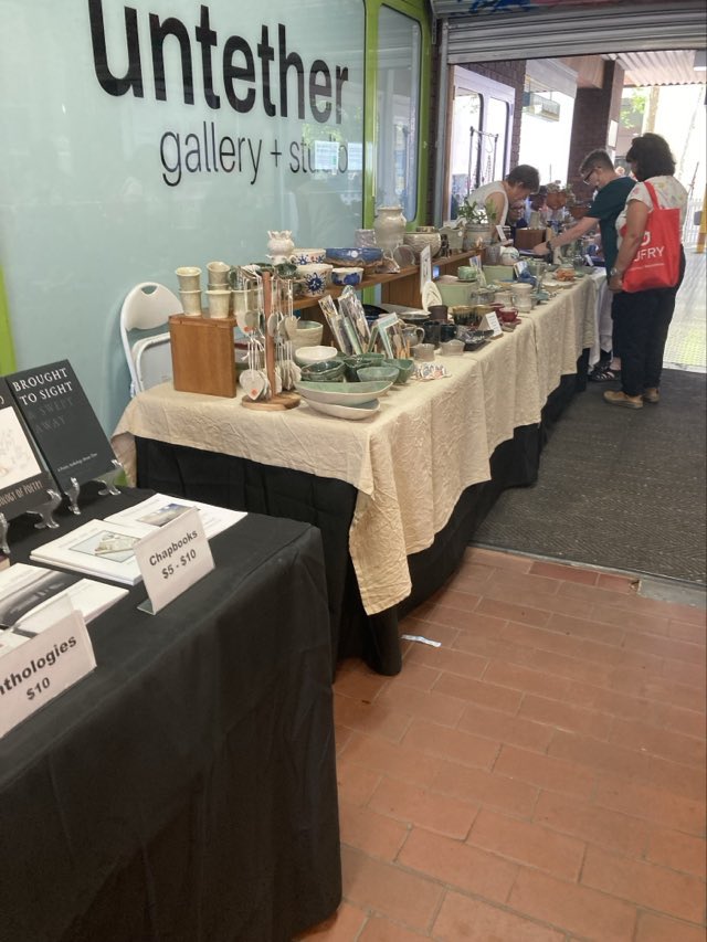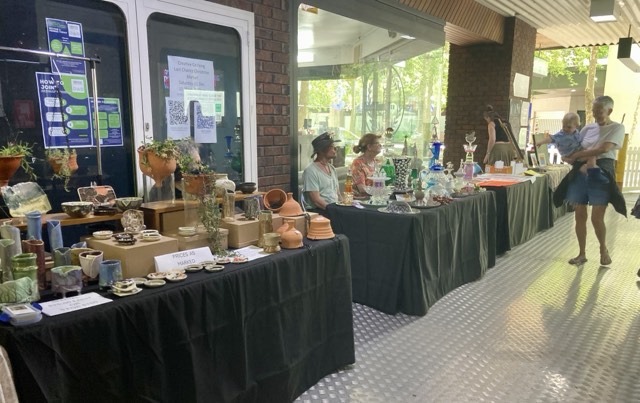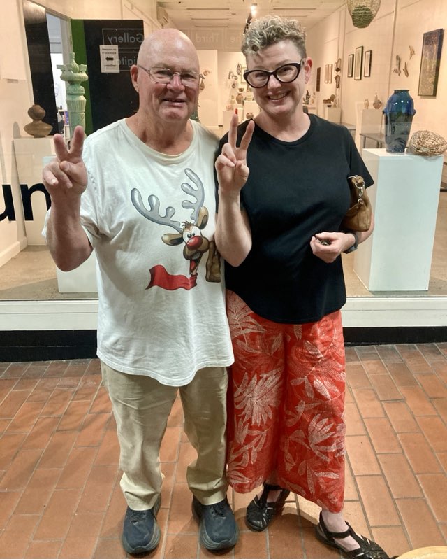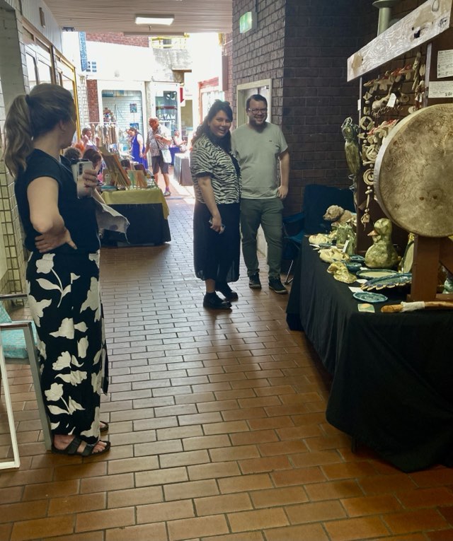 The Bottom Right Image: me and my neighbouring stallholder, Jen Stevens (Pottery), a school friend of my stepson, Greg Steven, from “40” years ago …