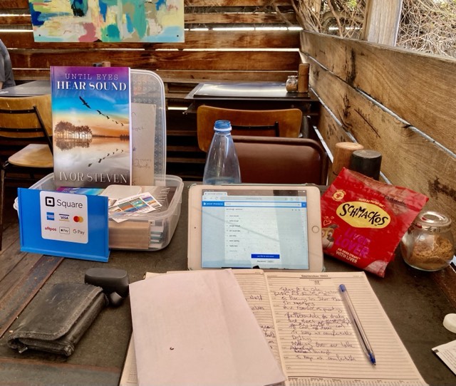 Hmmm, no green words in my poem, but there was a showy “Green” succulent plant under the cafe’s verandah
