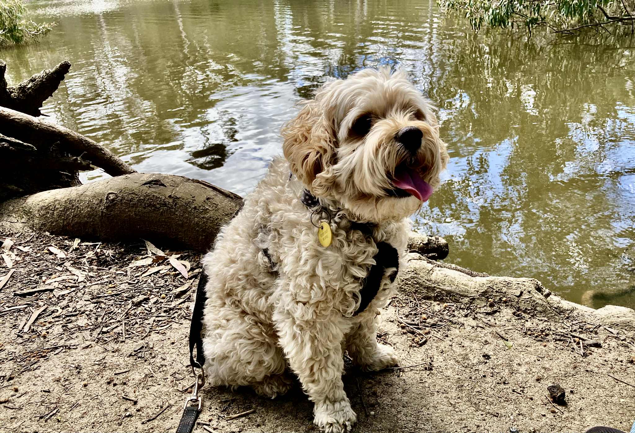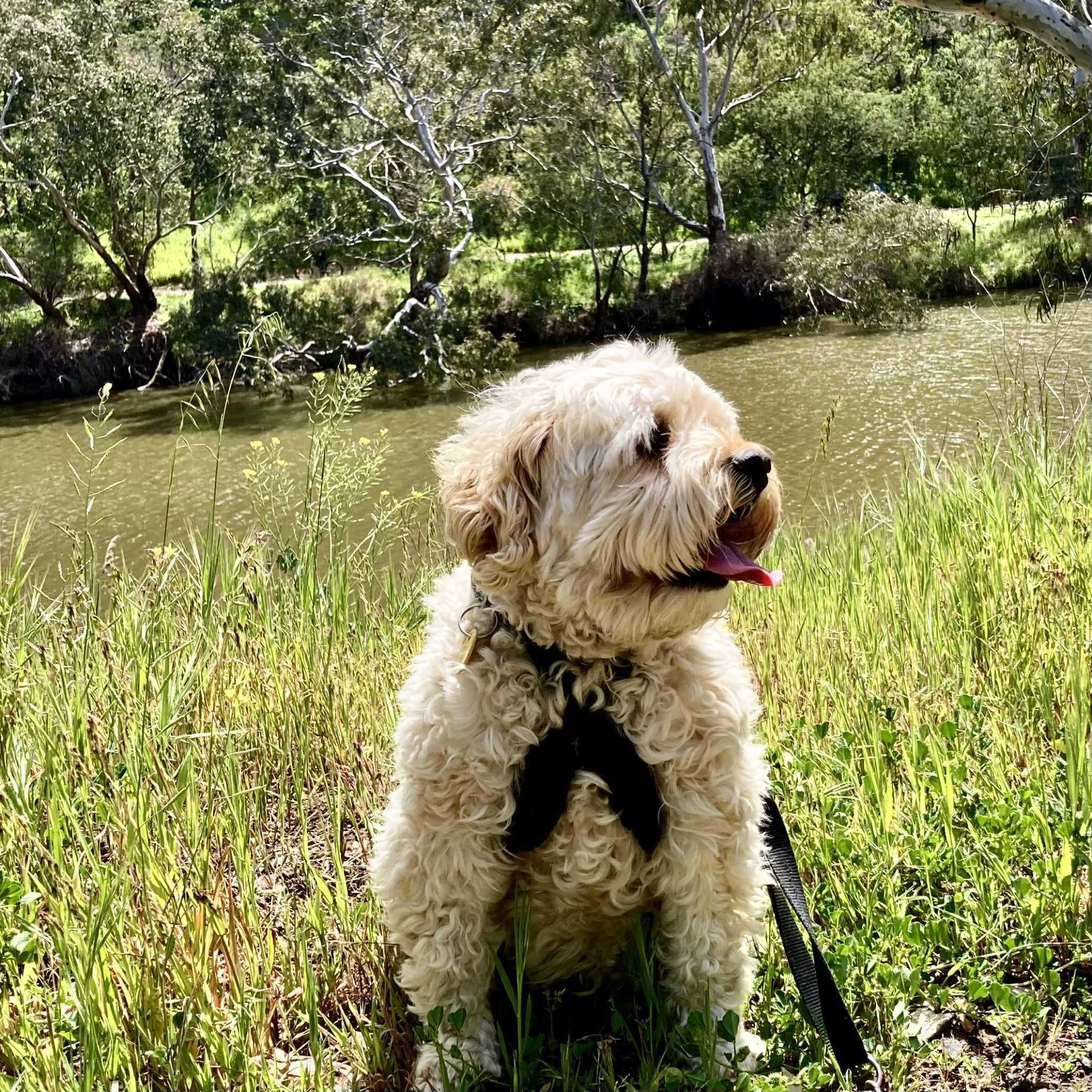 Frankie enjoyed his walkies along the banks of the Barwon River yesterday.