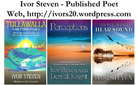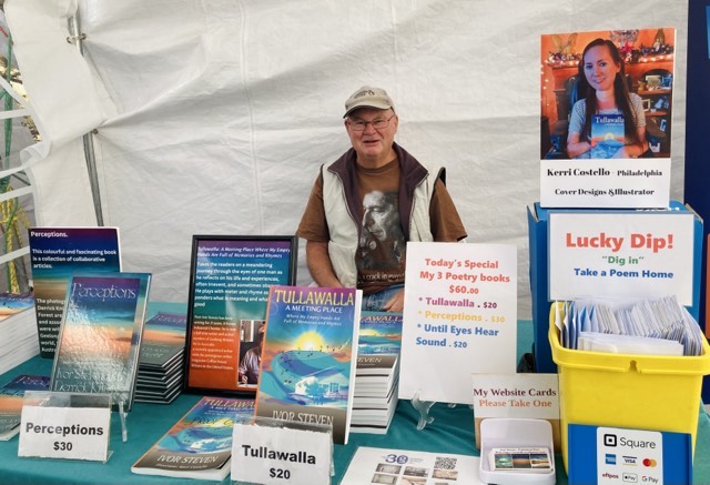 I’ll be at the “Ivor’s Books”, (andFrankie), stall with my books “Tullawalla, Perceptions, and Until Eyes Hear Sound”, as well as various other Anthologies and Chapbooks. They could be that “Something Different” gift idea for Christmas.