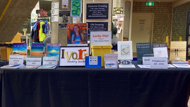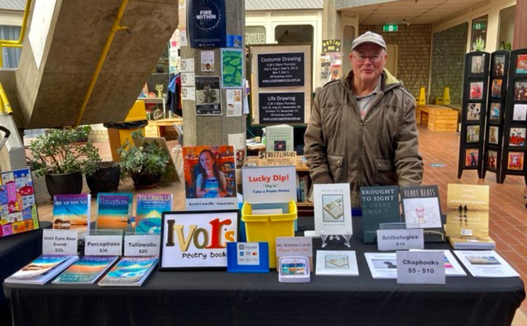 Come to the Centrepoint Arcade on Friday, December 5th, from 5 pm to 9 pm, and Saturday 6th, from 10 am to 3 pm. I’ll be at the “Ivor’s Books” stall with my books “Tullawalla, Perceptions, and Until Eyes Hear Sound”, as well as various other Anthologies and Chapbooks. They could be that “Something Different” gift idea for Christmas.