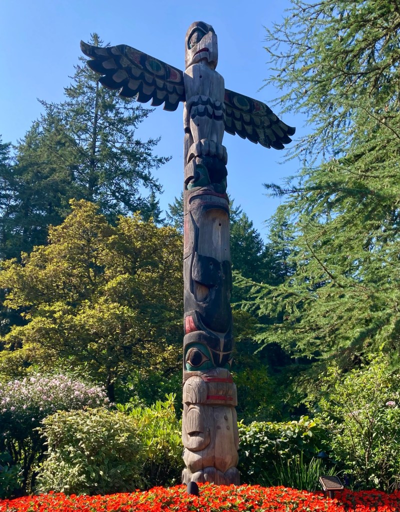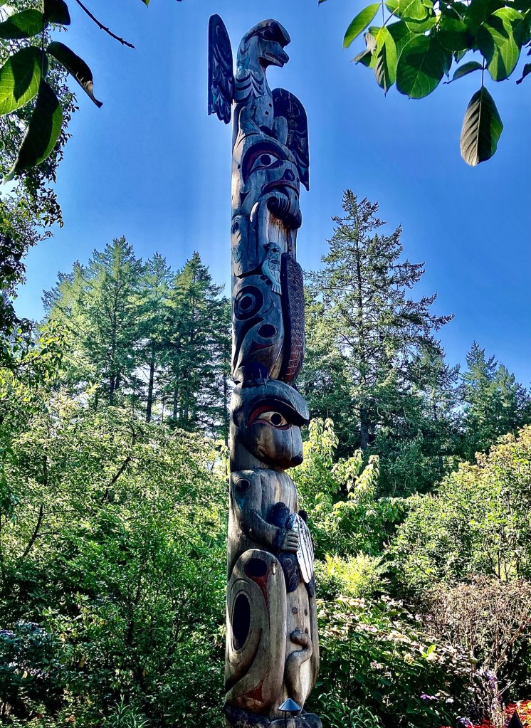 The traditional towering totems of the Cowichan Tribe in Duncan